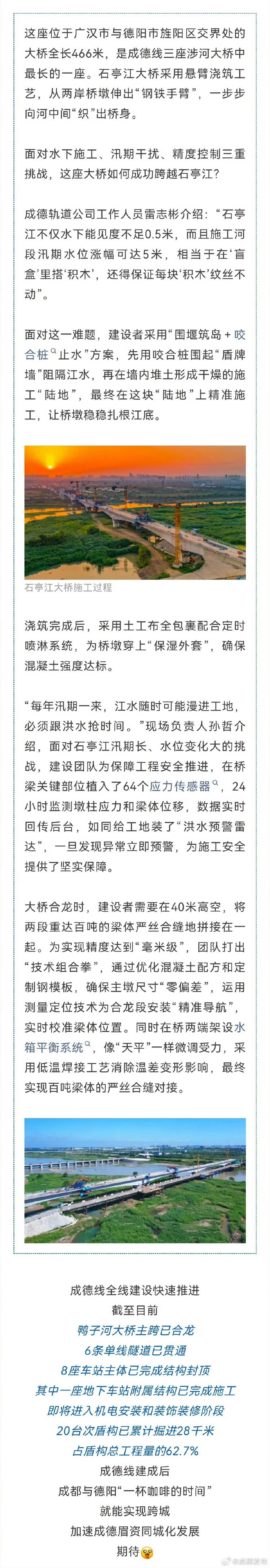成德线石亭江大桥全桥合龙,贯通进程加速